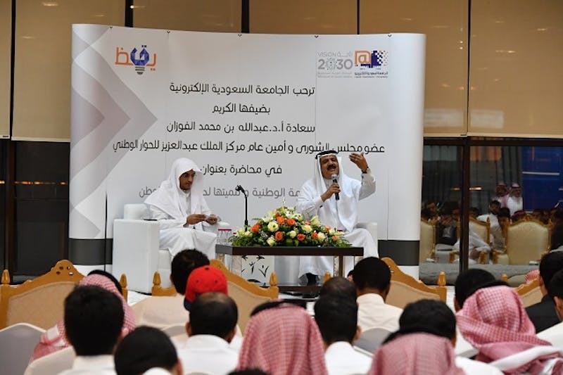 وأعرب سعادة مدير الجامعة السعودية الإلكترونية الأستاذ الدكتور عبد الله الموسى، باسمه ونيابة عن منسوبي الجامعة عن بالغ شكره وامتنانه لسعادة الدكتور عبد الله الفوزان، على زيارته للجامعة، والالتقاء بطلابها، لتوعيتهم وتوجيههم والحديث معهم عن أهمية اللحمة الوطنية وتنميتها لدى شباب الوطن. مبينًا أنها زيارة محفزة للجميع للوقوف لتعزيز الانتماء الوطني والوقوف ضد كل ما يسيء للوطن وقادته ومواطنيه.