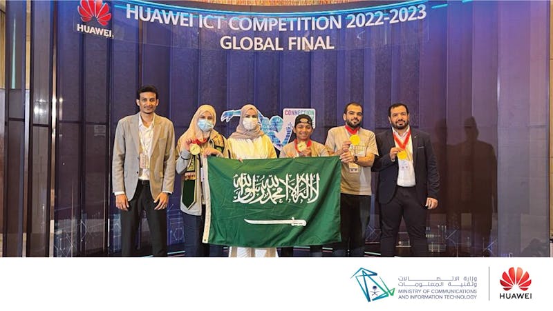 تبارك كلية الحوسبة والمعلوماتية في الجامعة السعودية الإلكترونية لطالبها سعد عوض الغامدي وأفراد الفريق الممثل للمملكة العربية السعودية الفوز بالجائزة الثالثة في مسارات الشبكات من بين146 فريقًا يمثلون 36 دولة مشاركة على مستوى العالم، خلال النهائيات العالمية لمسابقة هواوي للاتصالات وتقنية المعلومات 2023 في مدينة شنجن الصينية، التي أطلقتها هواوي بشراكة استراتيجية مع وزارة الاتصالات وتقنية المعلومات السعودية.