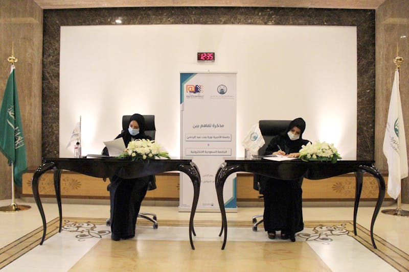 وقعت معالي رئيسة جامعة الأميرة نورة بنت عبد الرحمن، الدكتورة إيناس بنت سليمان العيسى مذكرة تفاهم مع رئيسة الجامعة السعودية الإلكترونية الدكتورة ليلك بنت أحمد الصفدي، اليوم في مقر جامعة الأميرة نورة، بهدف تأطير مشاريع ومبادرات التعاون بين الجامعتين، وتوظيف إمكانياتهما وخبراتهما بما يحقق مصالح مشتركة في مجال التعليم والتطوير المهني والتقني، وتوفير بيئة تدريبية تشجع الإبداع وتدعم التميز.