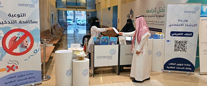 نظّمت عمادة شؤون الطلاب في الجامعة السعودية الإلكترونية، ممثلة بوحدة الإرشاد الاجتماعي، فعالية توعوية بعنوان "التوعية بمكافحة التدخين" في مقر الجامعة بالرياض.