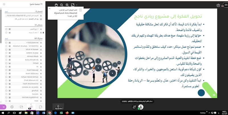 وتناول المعسكر موضوعات عدة، منها مفهوم التفكير الريادي وأهميته للفرد والمجتمع، ودوره في تعزيز روح المبادرة، إلى جانب استعراض طرق التغلب على العقبات والتحديات، ووضع خطة ريادية وتنفيذ المشروع الريادي، إضافة إلى التعريف بأساليب الحصول على التمويل وطرق إدارة المشاريع الريادية بفاعلية.