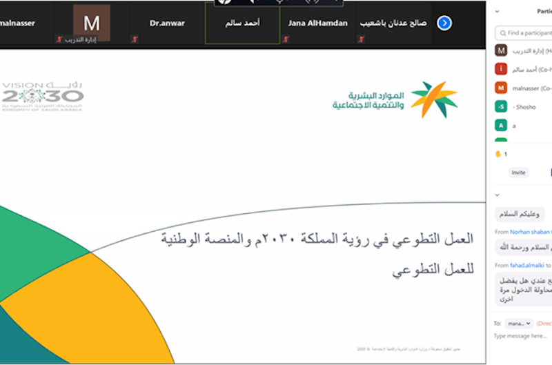 نظمت عمادة القبول وشؤون الطلاب بالجامعة السعودية الإلكترونية، متمثلة بنادي عطاء التطوعي، ورشة عمل افتراضية بعنوان: "تفعيل التطوع من خلال منصة العمل التطوعي"، وذلك بالتعاون مع المنصة الوطنية للعمل التطوعي.