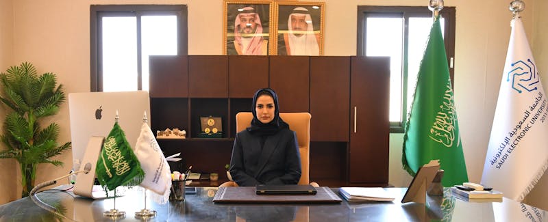 التقت عميدة الدراسات العليا المكلفة بالجامعة السعودية الإلكترونية الدكتورة نسرين بنت سعدي فرحة، افتراضيًا عبر البلاك بورد، بطلاب وطالبات الماجستير المستجدين في العام الجامعي 1445 هـ، حيث رحبت بهم وتمنت لهم التوفيق والنجاح في مسيرتهم التعليمية، كما نقلت تحيات سعادة رئيس الجامعة المكلف الأستاذ الدكتور محمد بن عبد الرحمن العويرضي، وتمنياته لهم بالتوفيق والنجاح.