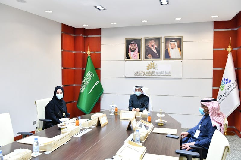 حضر الاجتماع من الهيئة الدكتور سهيل باجمّال المدير التنفيذي للمركز الوطني للتقويم والاعتماد الأكاديمي، والدكتور محمد السلمي مدير إدارة برامج الشريعة واللغة العربية في المركز الوطني للاعتماد الأكاديمي، والدكتور عبد الرحمن الشمراني مدير إدارة الاختبارات اللغوية في المركز الوطني للقياس.