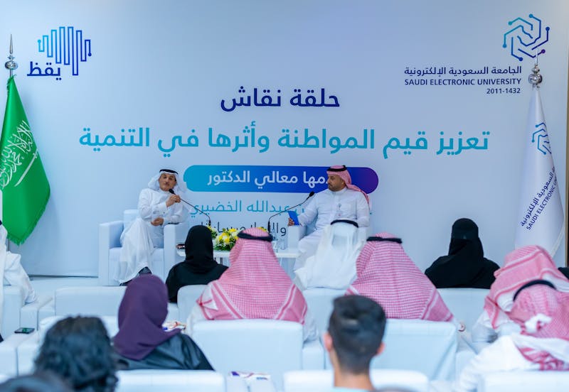 جاء ذلك خلال اللقاء الذي نظمته الجامعة السعودية الإلكترونية ممثلة في مقرها بالعاصمة الرياض، بحضور رئيسة الجامعة السعودية الإلكترونية الأستاذة الدكتورة ليلك بنت أحمد الصفدي وأعضاء هيئة التدريس والكادر الإداري وطلبة الجامعة وعدد من المهتمين، فيما نقلت عبر منصة بلاك بورد لكافة الفروع.