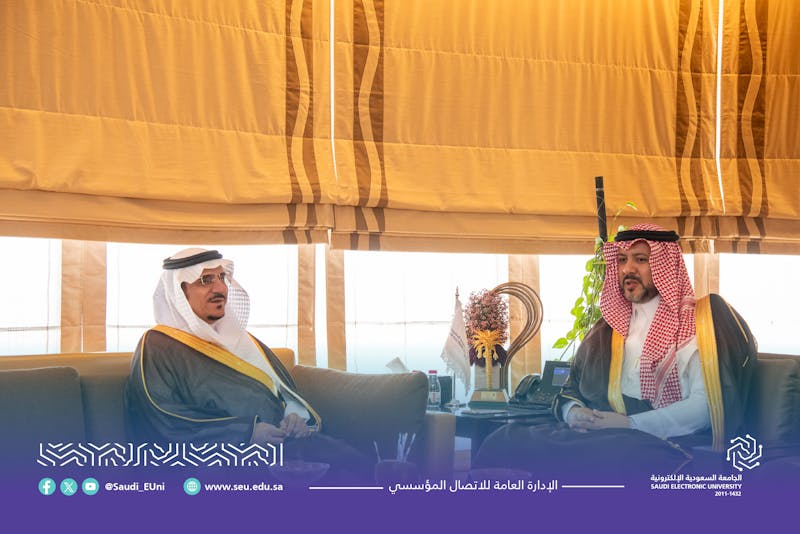 استقبل سعادة رئيس الجامعة السعودية الإلكترونية الأستاذ الدكتور محمد بن يحيى مرضي، اليوم في المقر الرئيس للجامعة بالرياض، معالي رئيس جامعة الباحة الأستاذ الدكتور عبد الله بن يحيى الحسين، وذلك في زيارة تهدف إلى تعزيز التعاون الأكاديمي والبرامجي بين الجامعتين.