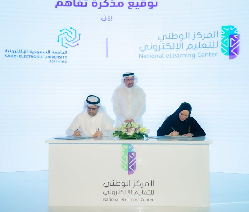 بحضور معالي وزير التعليم الدكتور حمد بن محمد آل الشيخ وقعت الجامعة السعودية الإلكترونية، مذكرة تفاهم مع المركز الوطني للتعليم الإلكتروني، اليوم الخميس في مقر المركز بالعاصمة الرياض، حيث مثّل الجامعة خلال مراسم التوقيع سعادة رئيسة الجامعة الأستاذة الدكتورة ليلك بنت أحمد الصفدي، ومثّل المركز سعادة الدكتور عبد الله بن محمد الوليدي،