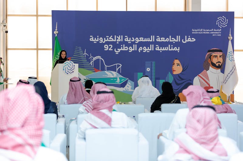 ورفعت سعادة رئيسة الجامعة في كلمتها التهنئة للقيادة الرشيدة -رعاها الله- بهذا اليوم الميمون باسم الجامعة السعودية الإلكترونية، وعبرت عن مشاعر الفخر والاعتزاز والانتماء لهذا الوطن الغالي، مؤكدة بأن المملكة تسير بخطى ثابتة وراسخة نحو مستقبل مشرق، ترسمه رؤية طموحة تسعى للنهوض بالوطن والمواطنين في كافة المجالات، ومنها التعليم وتنمية القدرات البشرية؛ لبناء مواطن منافس عالميًا، يتسلح بالعلم والمعرفة والمهارة.