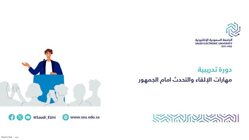 نظمت عمادة شؤون الطلاب بالجامعة السعودية الإلكترونية، ممثلةً بوحدة إرشاد الموهوبين، دورة تدريبية بعنوان “مهارات الإلقاء والتحدث أمام الجمهور”، وذلك عبر المنصة الإلكترونية، واستهدفت جميع طلبة الجامعة في مختلف مراكزها التعليمية.