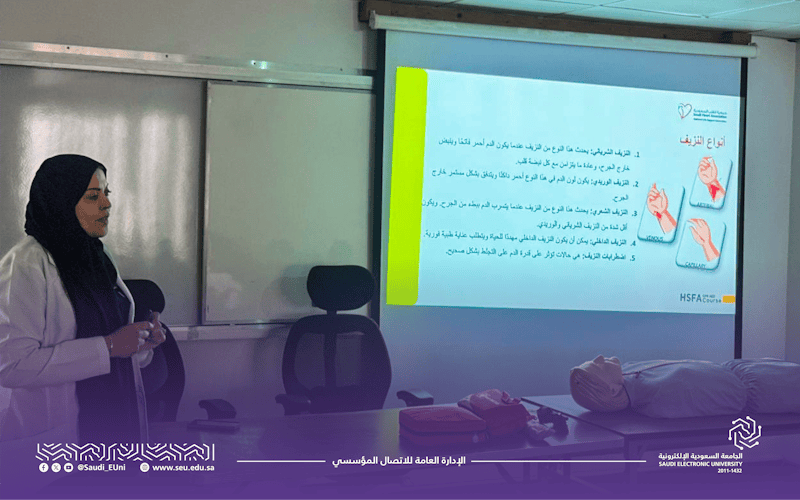 نظّم مركز الجامعة السعودية الإلكترونية التعليمي بمدينة الصناعية، بالتعاون مع مستشفى الجبيل العام، برنامجًا توعويًا بعنوان "الإسعافات الأولية"، بمقر مبنى الطالبات بالمركز، بهدف نشر الوعي الصحي وتعزيز مهارات السلامة لدى الطالبات.