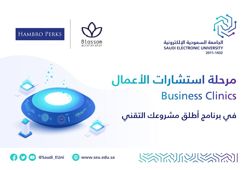 اختتمت الجامعة السعودية الإلكترونية جلسات استشارات الأعمال (Business Clinics) ضمن برنامج "أطلق مشروعك التقني" SEU Tech Launchpad بالتعاون مع خبراء الاستثمار الدولي والمتخصصين في تطوير الأعمال والمشاريع التقنية بشركة الاستثمار الدولي هامبرو-بركس العالمية ومسرعة بلوسوم. تم خلال هذه المرحلة تقديم نصائح واستشارات في الأعمال لمجموعة مرشحة من المشاريع التقنية الناشئة قدمها طلبة وأعضاء من هيئات التدريس من جامعات مختلفة. وتنوعت مجالات المشاريع التقنية المقدمة لتشمل: التعليم بالتلعيب، تصميم العقارات بالوقع الافتراضي، الذكاء الاصطناعي التوليدي لاستشارات الصحة النفسية، تحليل بيانات المتعلمين، وتقييم المواهب الرياضية بتقنية تعلم الآلة، التسويق الالكتروني للأزياء.