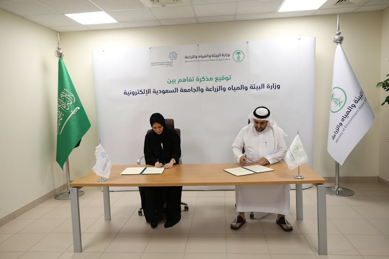 وقعت الجامعة السعودية الإلكترونية مذكرة تفاهم مع وزارة البيئة والمياه والزراعة، اليوم الأربعاء في مقر الوزارة في العاصمة الرياض؛ بهدف وضع إطار عام للتعاون بين الجانبين في مجال تقديم الخدمات الاستشارية، وتنمية قدرات الموارد البشرية، وتبادل الخبرات في المجالات المتعلقة بأنشطة الطرفين، حيث وقّع معالي نائب وزير البيئة والمياه والزراعة المهندس منصور بن هلال المشيطي المذكرة مع سعادة رئيسة الجامعة السعودية الإلكترونية الأستاذة الدكتورة ليلك بنت أحمد الصفدي.