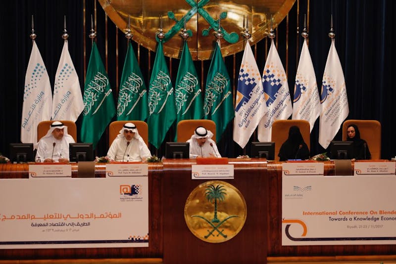 واصل المؤتمر الدولي للتعليم المدمج : الطريق إلى اقتصاد المعرفة الذي تنظمه الجامعة السعودية الإلكترونية خلال الفترة من 3 - 5 ربيع الأول تحت رعاية معالي وزير التعليم الدكتور محمد بن أحمد العيسى في مدينة الرياض، أعماله بعقد جلسة علمية رأسها معالي محافظ المؤسسة العامة للتدريب التقني والمهني الدكتور أحمد بن فهد الفهيد، بعنوان "التعليم المدمج في اقتصاد المعرفة".
