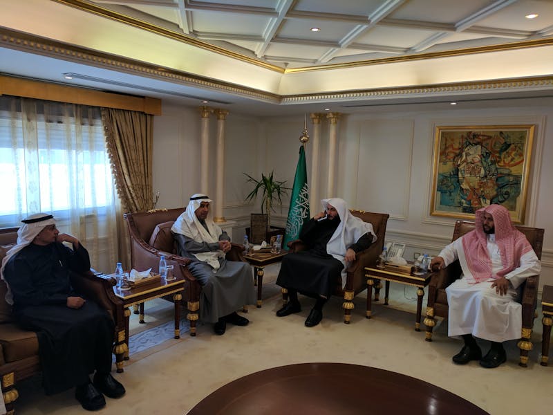 استقبل معالي وزير العدل رئيس المجلس الأعلى للقضاء الدكتور وليد بن محمد الصمعاني في مكتبه ظهر أمس، سعادة مدير الجامعة السعودية الإلكترونية الأستاذ الدكتور عبدالله بن عبدالعزيز الموسى، وتباحث الطرفان سبل التعاون المشترك وتجسيدها على أرض الواقع تحقيقاً للمصالح المشتركة بين الطرفين في التطوير والتدريب وتحقيق الجودة والتميز واستثمار الخبرات وتبادلها وفتح أفاق ومجالات جديدة للتعاون، مما يسهم في تطوير مواردهما البشرية ويحقق رؤية المملكة 2030 في الشراكة والتكامل بين كافة قطاعات الدولة.