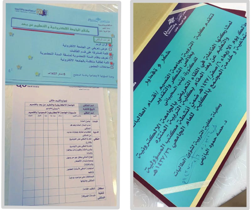 وكان اللقاء التعريفي بدأ بتلاوة من القرآن الكريم ، ثم كلمة من د. حصة البازعي وكيلة كلية التربية بجامعة القصيم، والتي أبدت سرورها بقبول الدعوة ، واهتمام القائمين على الجامعة الإلكترونية بالتعريف بأنظمتها وطرق تدريسها ، وسرورها بشغف منسوبات كلية التربية بالتعرف عن كثب على الجامعة السعودية الإلكترونية ، مؤكده بأن هذا اللقاء ثمرة التعاون المشترك بين القطاعين .