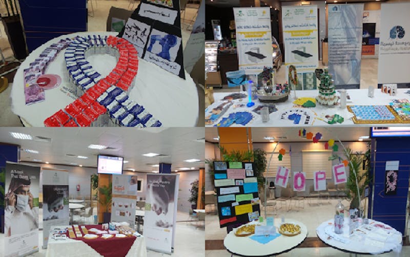 نظم قسم العلاقات العامة والإعلام مع وكالة القبول وشؤون الطالبات، بمقر الجامعة السعودية الإلكترونية الرئيسي في مدينة الرياض، برامج توعوية عن أمراض (الزهايمر، هشاشة العظام، سرطان الثدي، فايروس كورونا) بالتعاون مع المدرية العامة للشؤون الصحية بمنطقة الرياض، والتي أقيمت صباح يوم الأحد الماضي ببهو الجامعة، بحضور المشرفة العامة على البرنامج التوعوي الصحي بالمدرية العامة لشؤون الصحة بالرياض، المشرفة العامة على أقسام الطالبات، ومستشارة وكالة الجامعة للدارسات العليا والبحث العلمي، ومنسوبات الجامعة من طالبات وموظفات وعضوات هيئة التدريس.