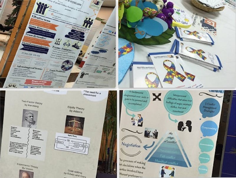 وبدأ اليوم بعرض الأنشطة البحثية والعلمية من قبل الطالبات المشاركات ومناقشتها أمام الحضور، وكانت الأنشطة عباره عن: عروض بوربوينت، وبحوث علمية، وملصقات، وتصاميم إنفو جرافيك، وأيضاً مطويات تثقيفية صحية.  وقد بلغ عدد الطالبات المشاركات 93 طالبه، وكان التفاعل من قبل الجميع أكثر من رائع.  وتم توزيع جوائز مادية، وجوائز تشجيعية للطالبات الفائزات بأفضل المشاركات، كما تم تسليم شاهدات تقدير لجميع الطالبات المشاركات بهذه الفعالية من قبل المشرفة العامة على أقسام الطالبات، ومتمنية لهن المزيد من التقدم والعطاء.​