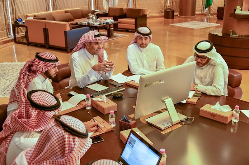 وتحدث سعادة الأستاذ الدكتور الموسى بالصوت والصورة مع الطلاب في كافة فروع الجامعة، وذلك عبر شاشات الحاسب والأجهزة الذكية، موضحًا لهم سياسات الجامعة وبرامجها الجديدة المعتمدة، وخططها التطويرية الساعية للارتقاء بأنظمتها التعليمية الإلكترونية؛ من أجل تحقيق تطلعات القيادة الرشيدة نحو دعم التعلم الإلكتروني والتعليم المدمج في المملكة وتحقيق رؤية 2030.