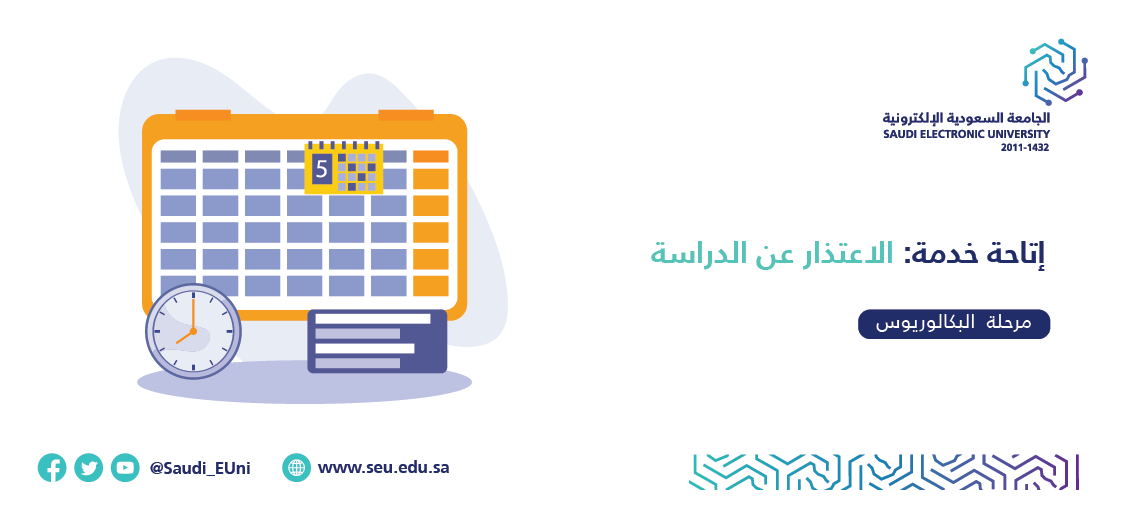 يبدأ التقديم على خدمة الاعتذار عن الدراسة عبر الخدمات الذاتية لطلبة البكالوريوس للفصل الصيفي من العام الأكاديمي 1446 هـ