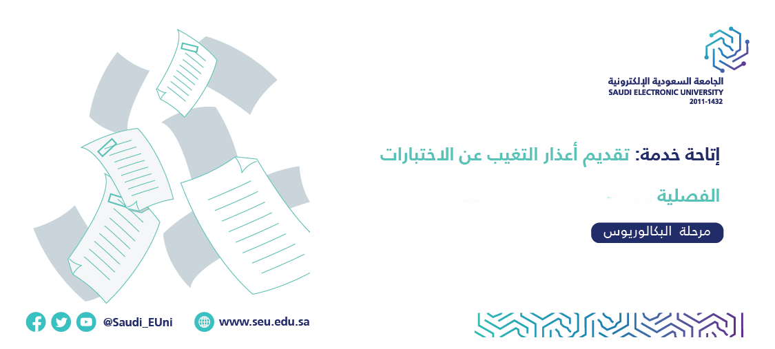 يبدأ تقديم أعذار التغيب عن الاختبارات الفصلية لطلبة الكليات والسنة الأولى المشتركة للفصل الدراسي الأول يوم الأحد الموافق 10\04\1446 هـ عبر الخدمات الطلابية