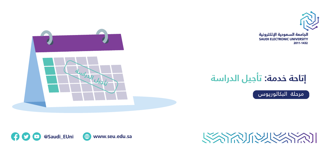 يبدأ التقديم على خدمة تاجيل الدراسة عبر الخدمات الذاتية لطلبة البكالوريوس للفصل الدراسي الأول من العام الأكاديمي 1447 هـ