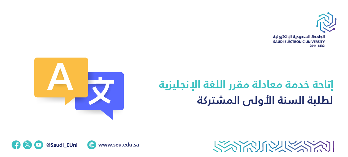 يسر الإدارة العامة للسنة الأولى المشتركة أن تعلن لجميع طلابها عن معادلة مقرر اللغة الإنجليزية  للفصل الدراسي الثاني للعام الدراسي 1445هـ، حيث أن التقديم على الأيقونة مع استرداد الرسوم متاحة حتى يوم الأثنين 10-7-1445 الموافق 22-1-2024