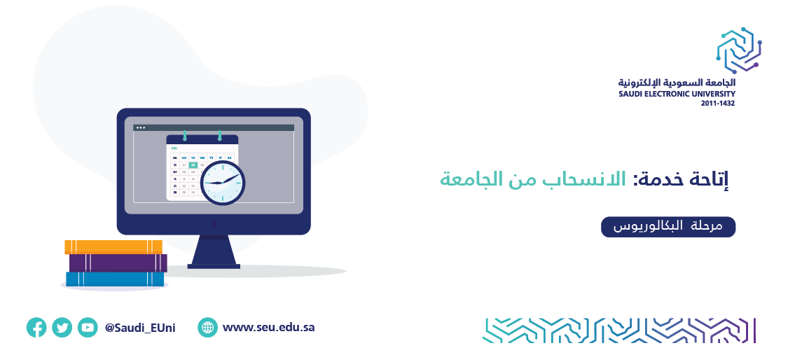 تم نقل خدمة الانسحاب من الجامعة المتاحة في الخدمات الطلابية إلى الخدمات الذاتية للطلبة والتي يمكن الاستفادة منها حسب التواريخ المعلنة في التقويم الأكاديمي للعام 1445