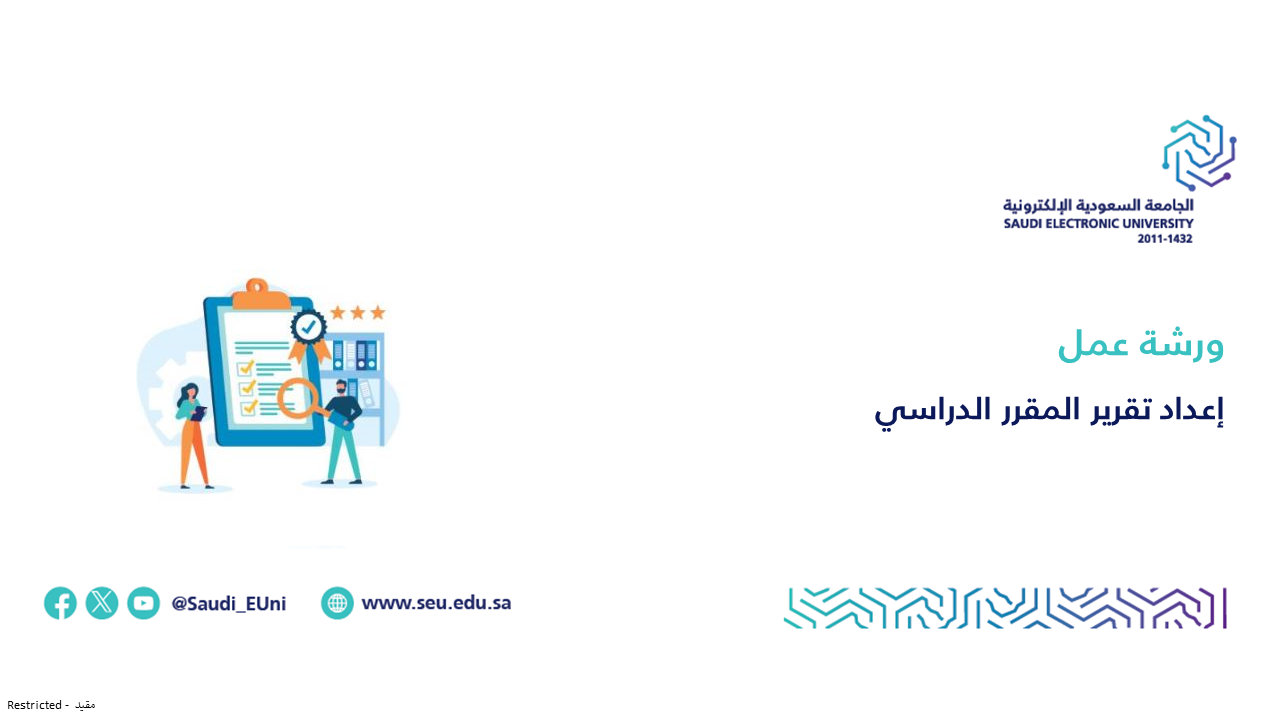 يسر عمادة التطوير والجودة دعوتكم لحضور ورشة عمل بعنوان: إعداد تقرير المقرر الدراسي، كثاني أنشطة مبادرة الجودة