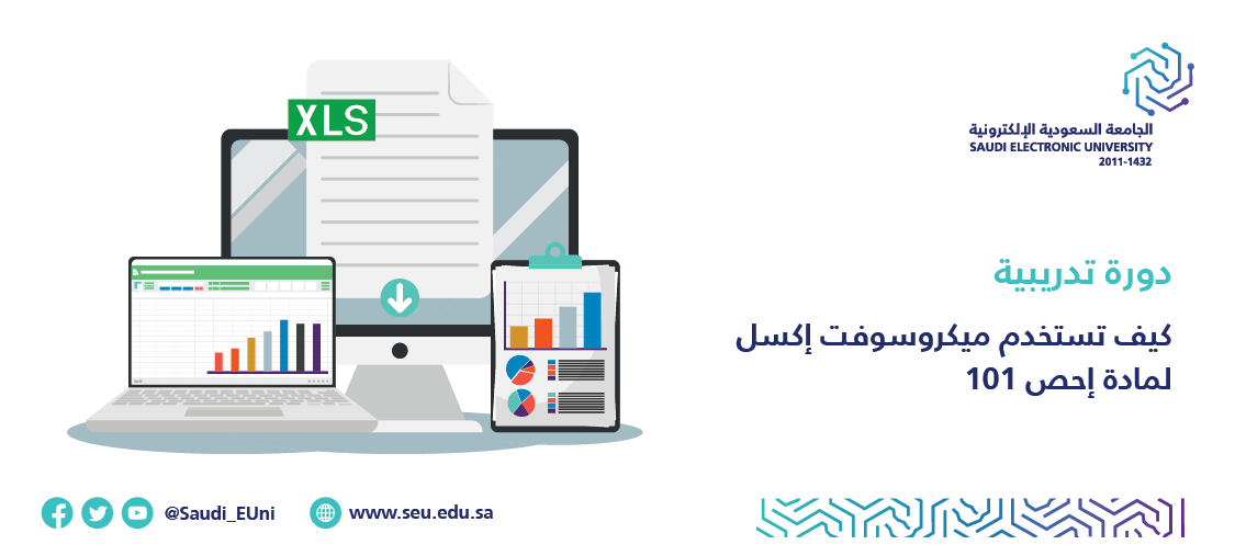 .يسر كلية العلوم والدراسات النظرية بالتعاون مع إدارة التدريب دعوتكم لحضور دورة تدريبية بعنوان: كيف تستخدم ميكروسوفت إكسل لمادة إحص 101