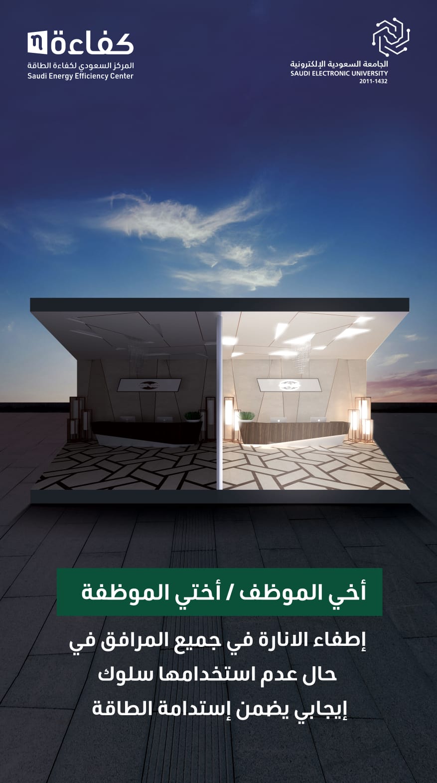 إطفاء الإنارة في جميع المرافق في حال عدم استخدامها سلوك إيجابي يضمن استدامة الطاقة.