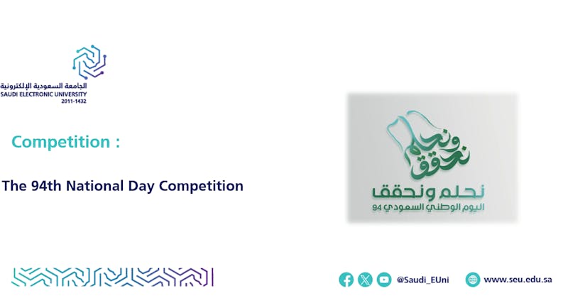 The Deanship of Admissions and Student Affairs is grateful to announce the opening of reception of entries for the 94th National Day Competition in achieving #SaudiVision2030 which aims to provide you, our dear students, with the opportunity to share your talents and feelings on this day that is dear to our hearts.