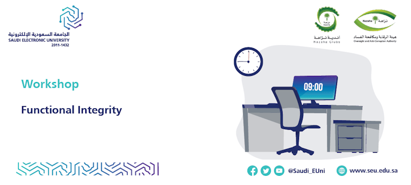 The Deanship of Admission and Student Affairs, represented by the Student Integrity Club, in cooperation with the Control and Anti-Corruption Authority, is pleased to invite you to attend a workshop entitled: Functional Integrity