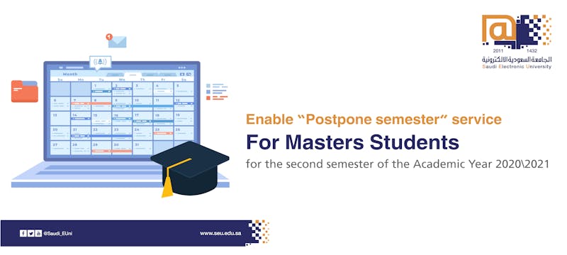 The Deanship of Graduate Studies is pleased to announce to its students the start of receiving requests for postpone semester service for the second Semester of Academic Year 2021