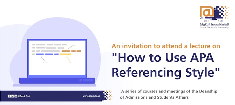 The Deanship of Admissions and Student Affairs invites you to attend a training course entitled: How to Use APA Referencing Style.