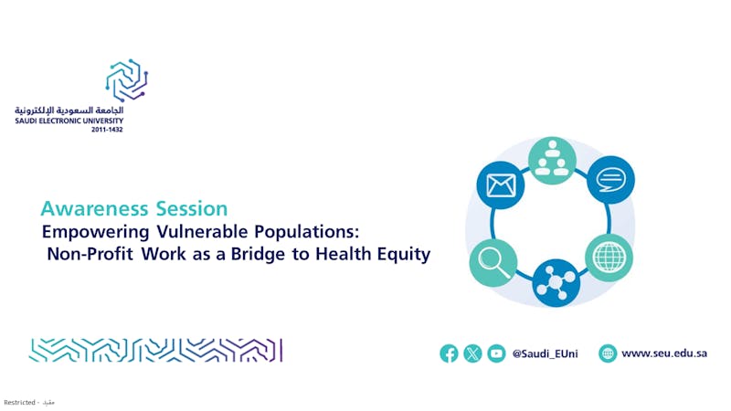 The session aims to shed light on the role of the non-profit sector in promoting health equity and supporting the health of vulnerable populations. It will also highlight training opportunities available for health college students to participate in impactful community projects.