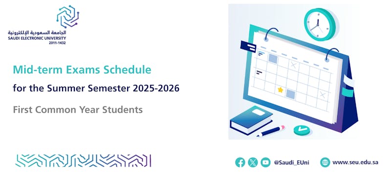 First Common Year Administration would like to announce the 1447 mid-term examination schedule for all its student population which will be held online in the university branches via (Blackboard) and the secured browser (Respondus). Schedule here The scheduled mid-term exams will to take place between SUNDAY 13/04/1447 corresponding to 05/10/2025 until Wednesday 16/04/1447 corresponding to 08/10/2025