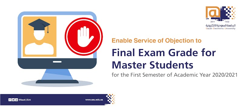 The Deanship of Graduate Studies announces the Enable Objection to final examination grade service for Master's students for the first semester of academic year 2020/2021