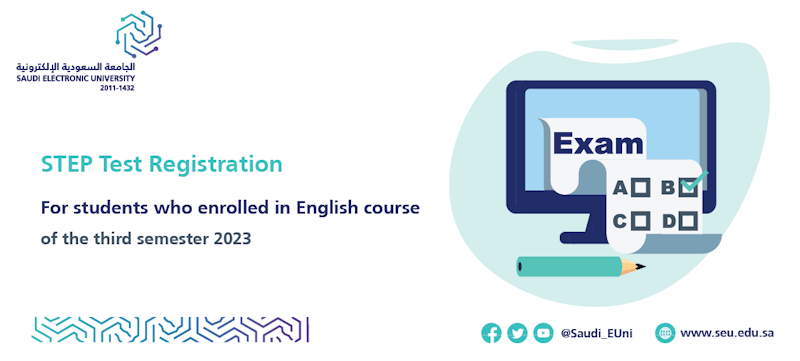 The Deanship of Common First Year announce the examination dates for STEP are between May 14, 2023 and May 31, 2023. All SEU students enrolled in English course of the Third Semester 2022 are advised to log in Qiyas website and register for STEP exam. Registration fees for SEU students have been prepaid by the university.