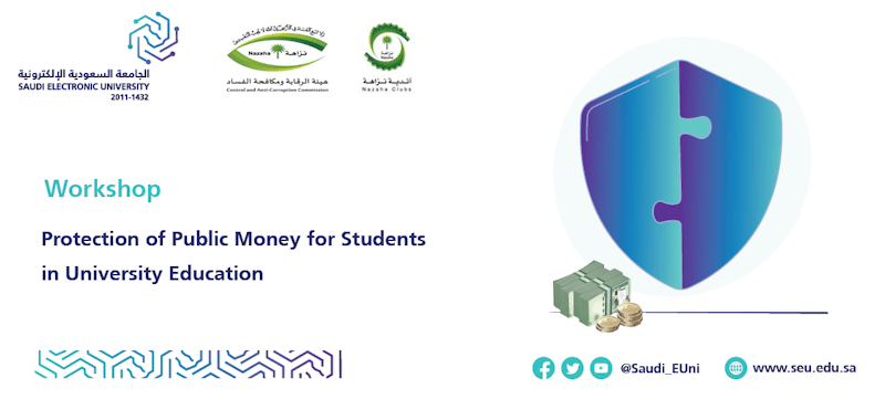 The Deanship of Admission and Student Affairs, represented by the Student Integrity Club, in cooperation with the Control and Anti-Corruption Authority, is pleased to invite you to attend a workshop entitled: Protection of public money for students in university education.