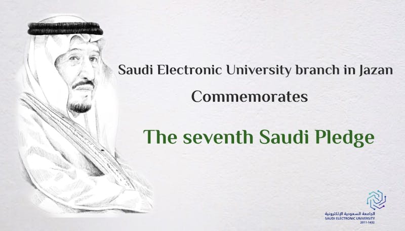 The Saudi Electronic University branch in Jazan celebrated the anniversary of the pledge of allegiance to the Custodian of the Two Holy Mosques King Salman bin Abdulaziz Al Saud on Wednesday, 5-4-1443 AH, with hearts filled with feelings of love, gratitude, and appreciation for King Salman bin Abdulaziz and his Crown Prince Muhammad bin Salman praised the developmental achievements, historical reforms, and international and national succor of King Salman bin Abdulaziz and his Crown Prince Muhammad bin Salman.