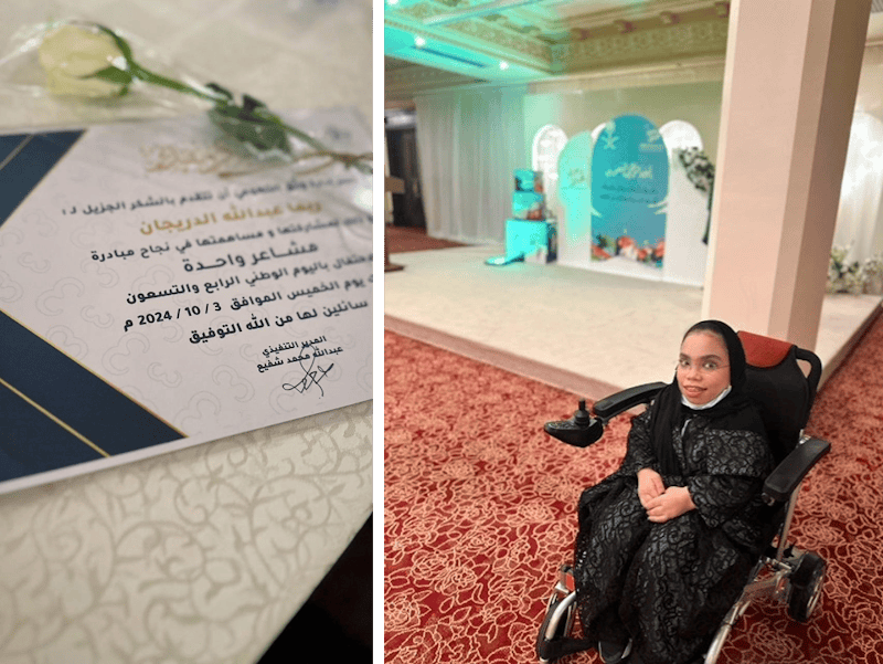 Reema's speech earned her special praise from the audience, as she acknowledged the significant efforts of the Custodian of the Two Holy Mosques in supporting citizens and his concern for special needs cases. Her words served as a motivational message for all individuals with disabilities, embodying the spirit of challenge and determination in serving the nation.