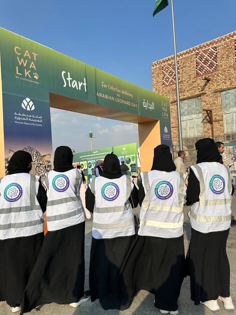 A number of students from the Saudi Electronic University branch in Madinah participated with the Municipality of Madinah in the Cat Walk awareness march, which aims to spread awareness of the interdependence of our collective well-being with the creatures around us and the importance of preserving wild cats, especially the Arabian leopard, on November 10, 2024 at 4 pm in King Fahd Park with a number of government agencies participating in the march.