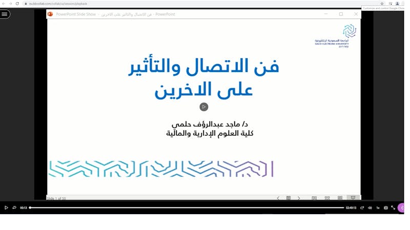 The Saudi Electronic University branch in Madinah held a blackboard training course entitled: (The Art of Communication and Influencing Others), presented by Dr. Majid bin Abdul Raouf Helmy, a faculty member at the College of Administrative and Financial Sciences at the Saudi Electronic University, targeting male and female students in the various branches of the University.
