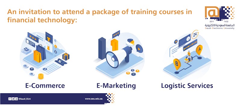 The Saudi Electronic University in Madinah branch concluded a set of financial technology programs that was held over three days, including “an e-commerce and e-marketing course” presented by the certified trainer, Mr. Khaled Al-Harbi on Sunday and Monday. The number of attendees exceeded 300 trainees for each day. During this course, electronic commerce, the most important methods of electronic marketing, the rules for the success of e-commerce, the development skills, and the understanding of marketing concepts in the 21st century were introduced. The last course was “the logistic services” which was presented by Dr. Rehab Tajaldeen, during which the concept of logistic management and its role in achieving the organization’s goals and the importance of logistical management in customer services was presented. The trainees expressed their enthusiasm and interaction during the course