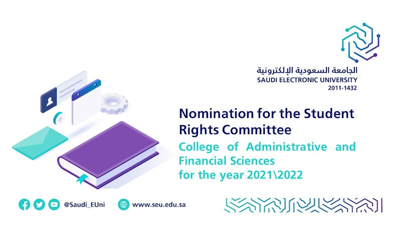 The College of Administrative and Financial Sciences is pleased to invite its students to participate in the nomination for the Student Rights Committee of the College of Administrative and Financial Sciences for the year 2021\2022. The nomination is available and starting today until Saturday 26/1/1443 AH - 04/09/2021 AD.