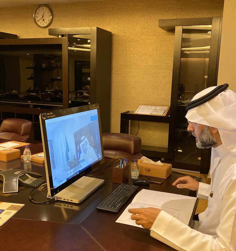 On behalf of His Excellency, the Minister of Education and Chair of the University Council, Dr. Hamad ALsheikh, His Excellency the Rector of Saudi Electronic University, Prof. Ibrahim Almuaiqel, chaired the meeting of the University Council held online on Monday, April 13, 2020. The attendees were the Secretary of Universities Council, Dr. Muhammad Alsaleh, and all the Council members, including University vice-rectors, faculty deans and deans of support deanships.