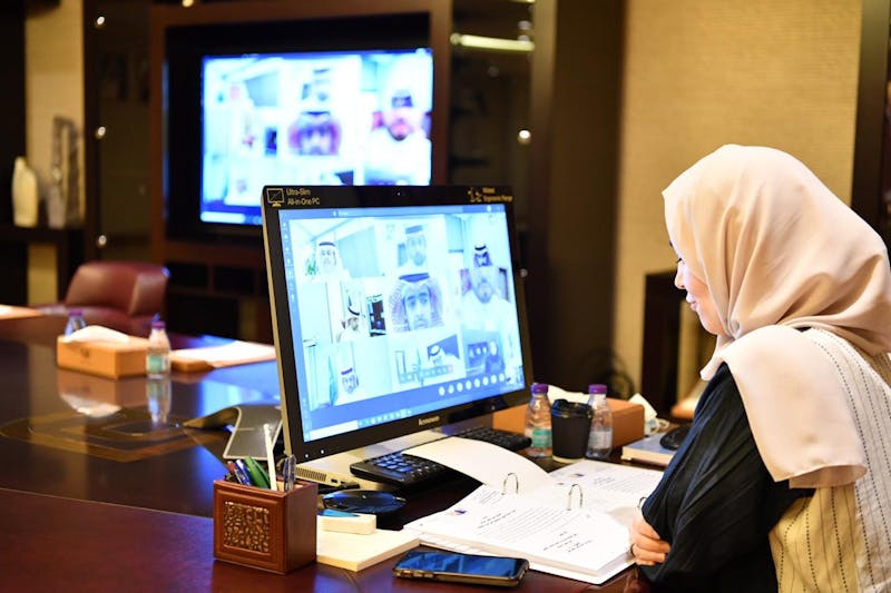 SEU President, Prof. Dr. Lailak Al-Safadi, virtually chaired The third meeting of the University Board for the academic year 1442 AH, in the presence of the Secretary of Universities Affairs Board, Dr. Muhammad Al-Saleh and all board members.