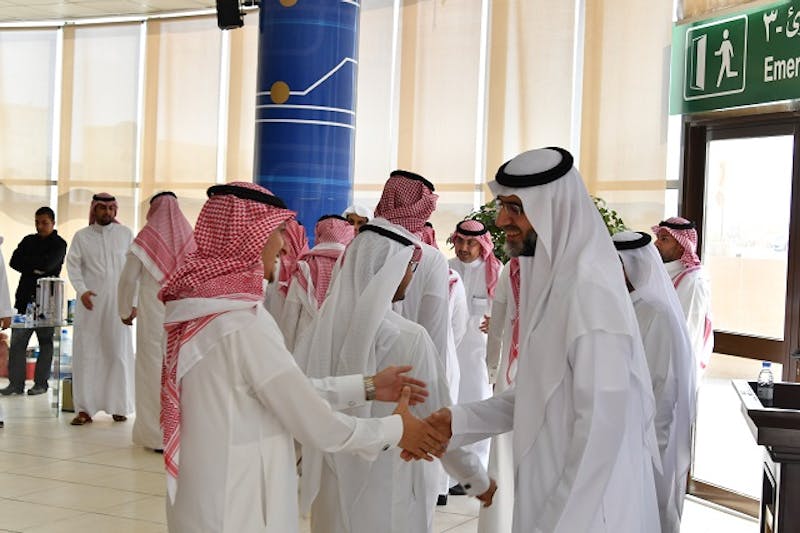His Excellency Dr. Ibrahim bin Abdul Aziz Al-Muaqil delivered a speech during the ceremony, in which he presented on his behalf and on behalf of the university’s employees the most sincere congratulations and blessings to the position of the Custodian of the Two Holy Mosques King Salman bin Abdulaziz Al Saud, and His Highness the Crown Prince, His Royal Highness Prince Muhammad bin Salman - may God protect them - On the occasion of the blessed Eid Al-Fitr, God has returned to us and the Arab and Islamic nation with good, Yemen and blessings.