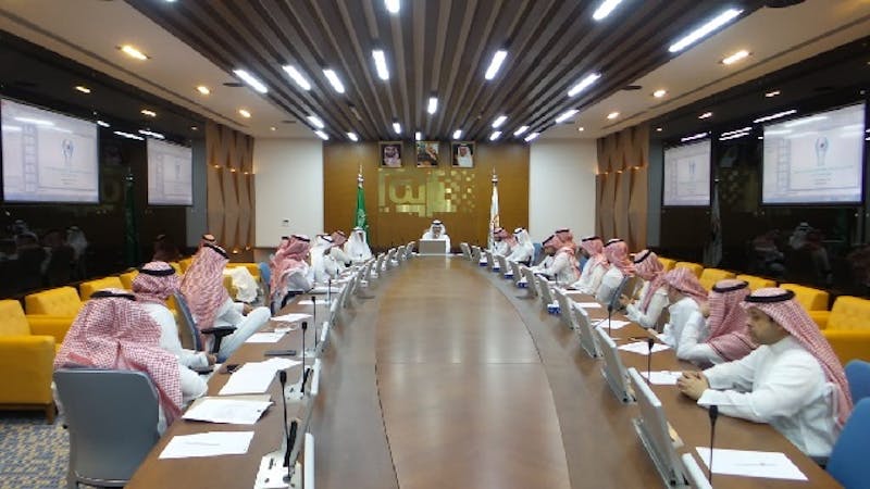 His Excellency the University's Director-Designate, Prof. Dr. Ibrahim Bin Abdulaziz Al-Maakel, presided today at the headquarters in Riyadh, the first periodic meeting of deans and faculty agents and heads of scientific departments for the academic year 1441 H. At the beginning of the meeting, the university director-designate thanked everyone for their efforts during the past period, and stressed that the responsibility has become a double for all to upgrade the level of services provided to university students technically and academically, at all levels and in all branches, especially in The high demand for study at the university during the recent period remained at a number of 26,000 students.
