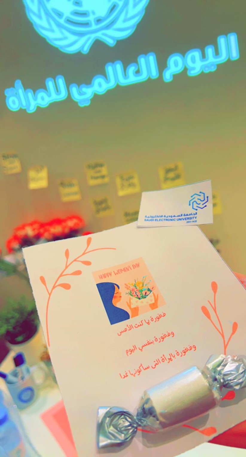 أقام شطر الطالبات بفرع الجامعة السعودية الإلكترونية في أبها احتفالًا بمناسبة اليوم العالمي للمرأة، الخميس الموافق 10 مارس 2022 م، للاحتفاء بمنجزات المرأة السعودية والتأكيد على أهميتها ومشاركتها الفعّالة للنهوض بالوطن في شتى المجالات.